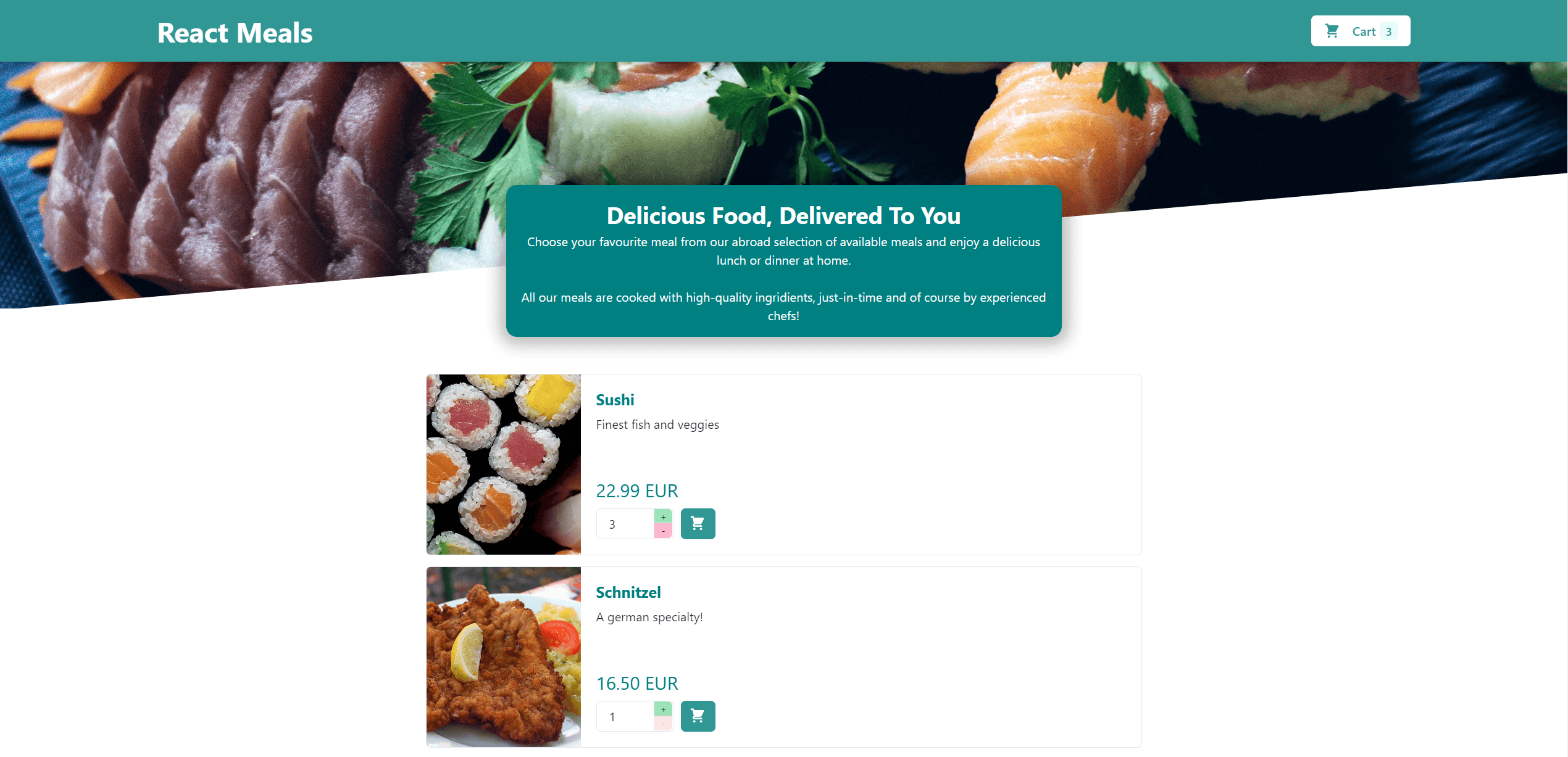 A React single page demo application to order food.
